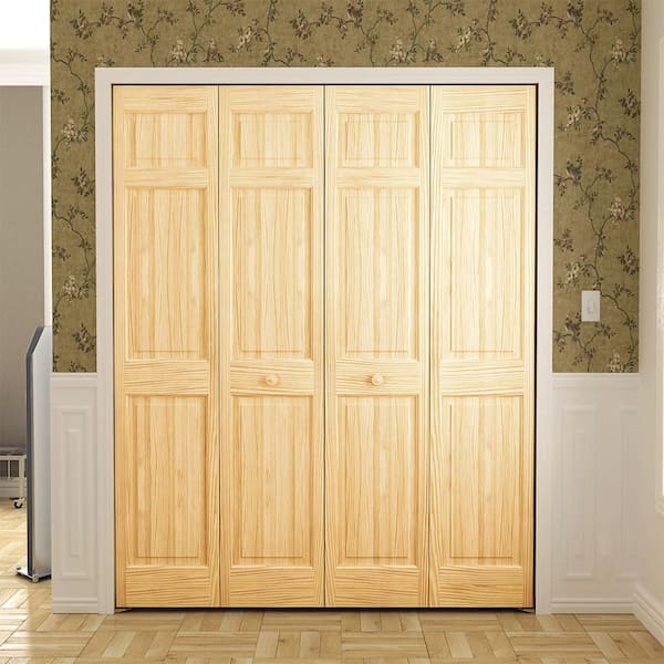 30 in. x 80 in. 6 Panel Raised Solid Core Unfinished Pine Wood Bifold Door