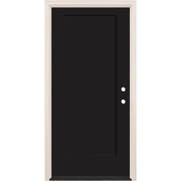 32 in. x 80 in. 1 Panel Left-Hand Onyx Painted Fiberglass Prehung Front Door w/6-9/16 in. Frame and Bronze Hinges