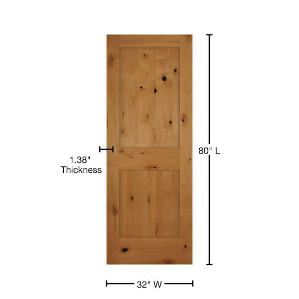 32 in. x 80 in. Left-Handed 2-Panel Shaker Solid Core Knotty Alder Single Prehung Interior Door