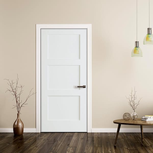 32 in. x 80 in. Left-Handed 3-Panel Horizontal Shaker Solid Core Primed Pine Wood Single Prehung Interior Door