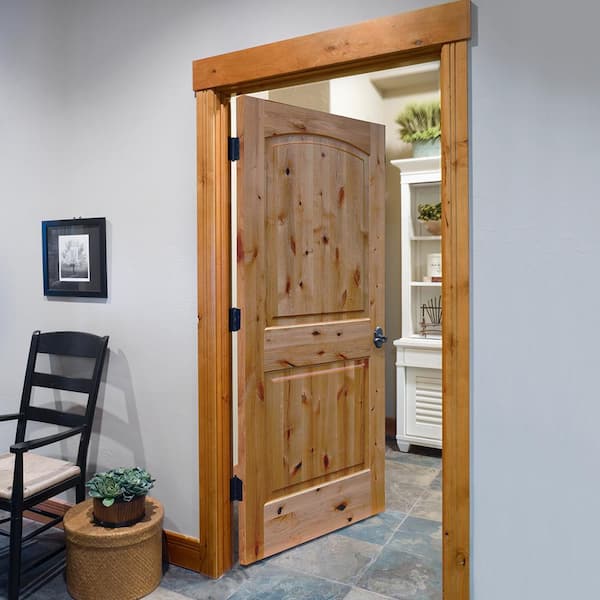 36 in. x 80 in. 2 Panel Arch Top Raised Panel Ovolo Sticking Solid Core Unfinished Knotty Alder Wood Interior Door Slab