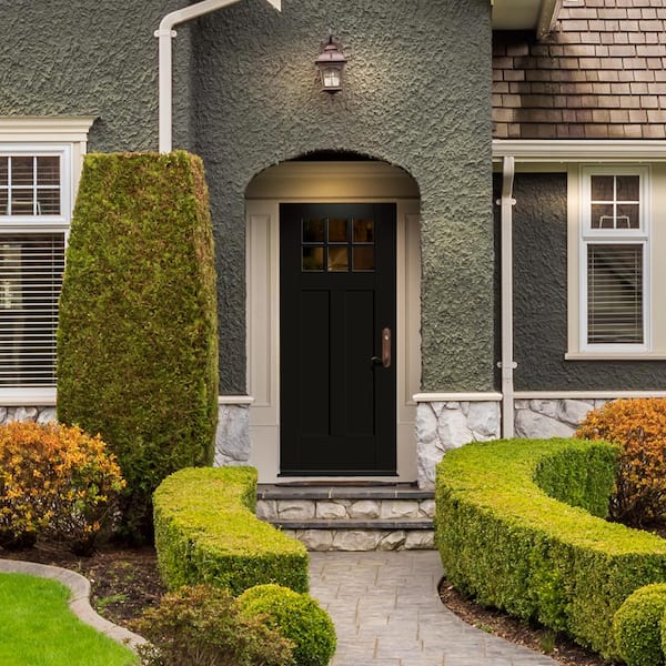 36 in. x 80 in. Left-Hand 6-Lite Clear Glass Alpine Painted Fiberglass Prehung Front Door with 6-9/16 in. Frame