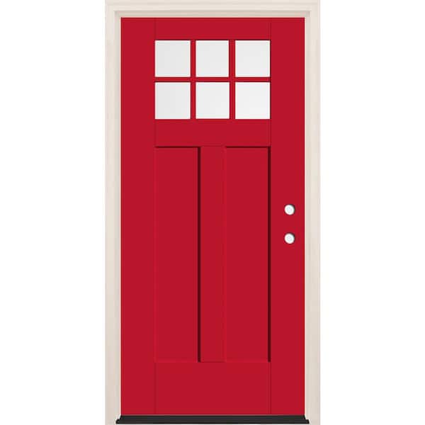 36 in. x 80 in. Left-Hand 6-Lite Clear Glass Ruby Red Painted Fiberglass Prehung Front Door with 6-9/16 in. Frame