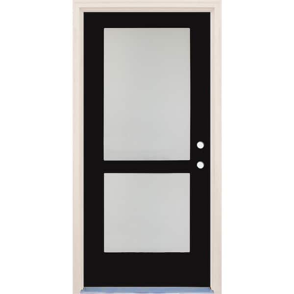 36 in. x 80 in. Left-Hand/Inswing 2 Lite Satin Etch Glass Onyx Painted Fiberglass Prehung Front Door with 6-9/16" Frame