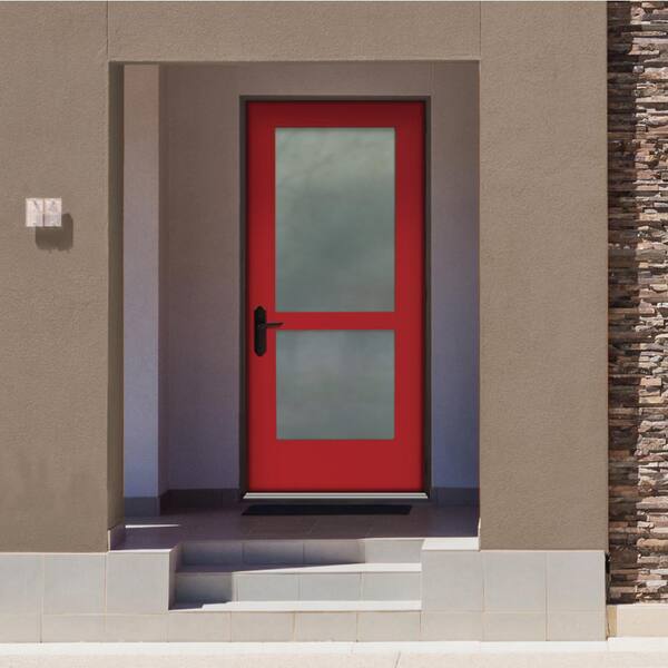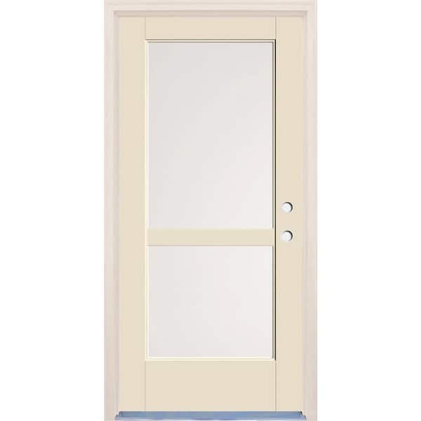 36 in. x 80 in. Left-Hand/Inswing 2 Lite Satin Etch Glass Unfinished Fiberglass Prehung Front Door w/4-9/16" Frame