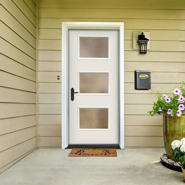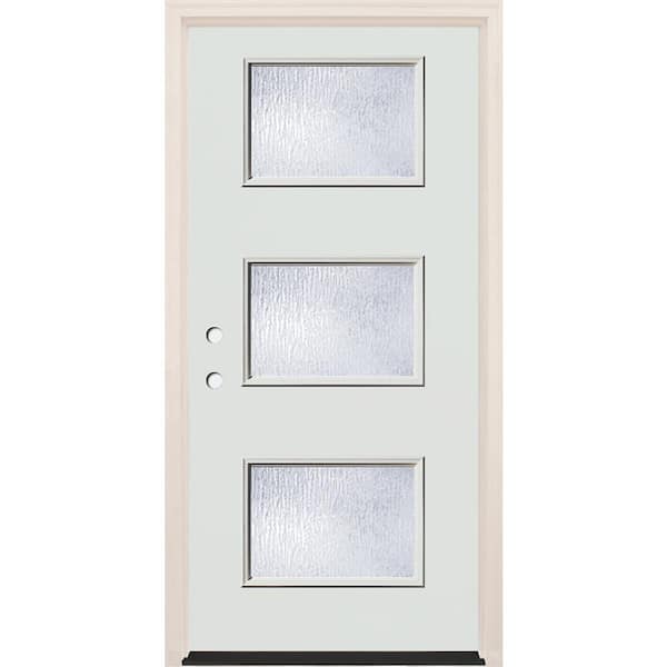 36 in. x 80 in. Right-Hand/Inswing 3-Lite Rain Glass Alpine Painted Fiberglass Prehung Front Door w/4-9/16 in. Frame