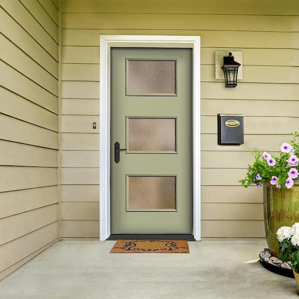 36 in. x 80 in. Right-Hand/Inswing 3-Lite Rain Glass Cypress Painted Fiberglass Prehung Front Door w/6-9/16 in. Frame