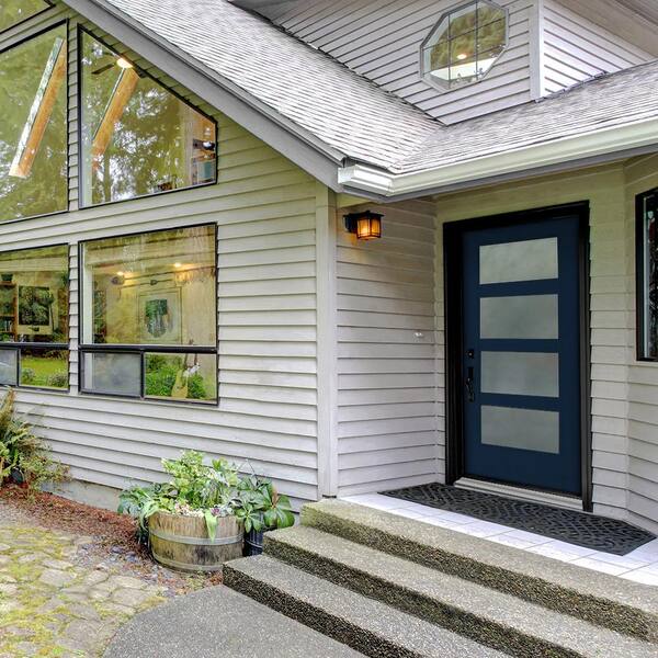 36 in. x 80 in. Right-Hand/Inswing 4 Lite Satin Etch Glass Reef Painted Fiberglass Prehung Front Door with 6-9/16" Frame