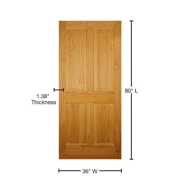 36 in. x 80 in. Right-Handed 4-Panel Solid Core Pine Single Prehung Interior Door