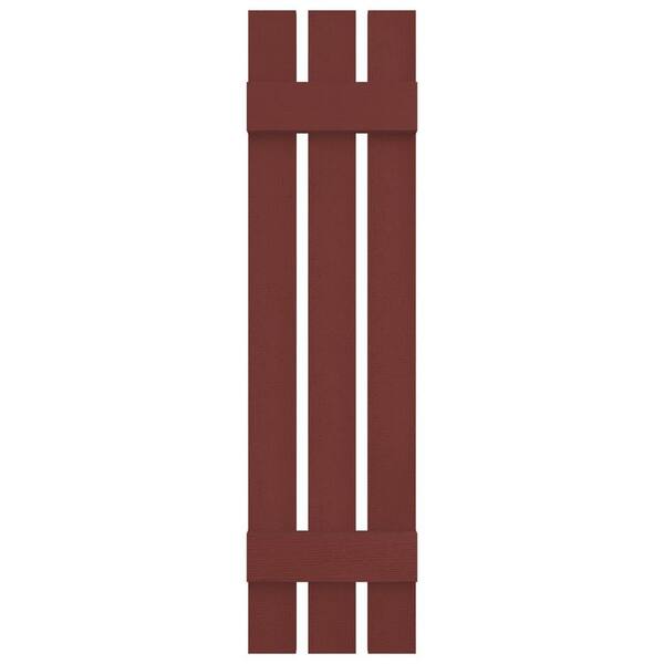 12 in. W x 43 in. H Vinyl Exterior Spaced Board and Batten Shutters Pair in Burgundy Red