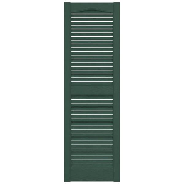 12 in. x 39 in. Louvered Vinyl Exterior Shutters Pair in Forest Green