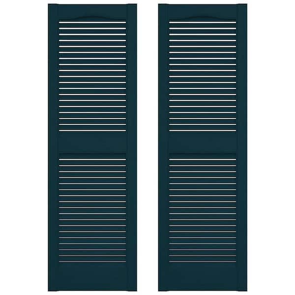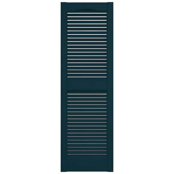 12 in. x 39 in. Louvered Vinyl Exterior Shutters Pair in Midnight Blue