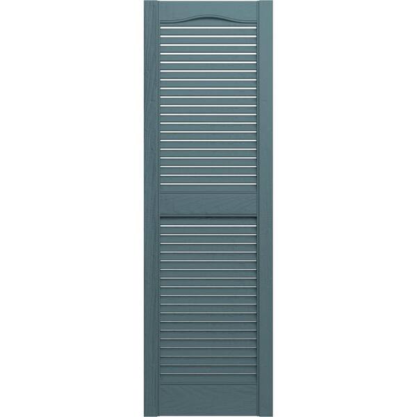 12 in. x 52 in. Louvered Vinyl Exterior Shutters Pair in Wedgewood Blue