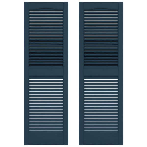 12 in. x 67 in. Louvered Vinyl Exterior Shutters Pair in Classic Blue