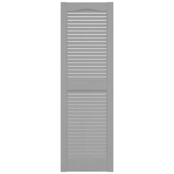 12 in. x 80 in. Louvered Vinyl Exterior Shutters Pair in Paintable