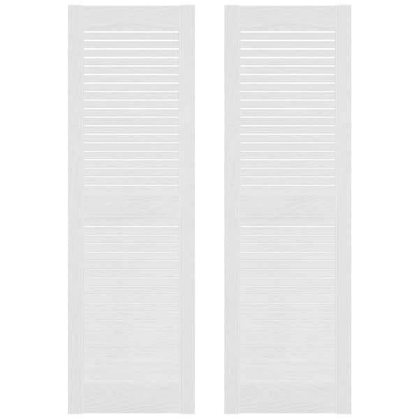 14.5 in. x 25 in. Louvered Vinyl Exterior Shutters Pair in White
