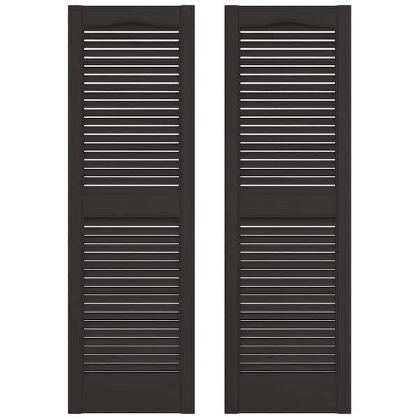 14.5 in. x 39 in. Louvered Vinyl Exterior Shutters Pair in Musket Brown