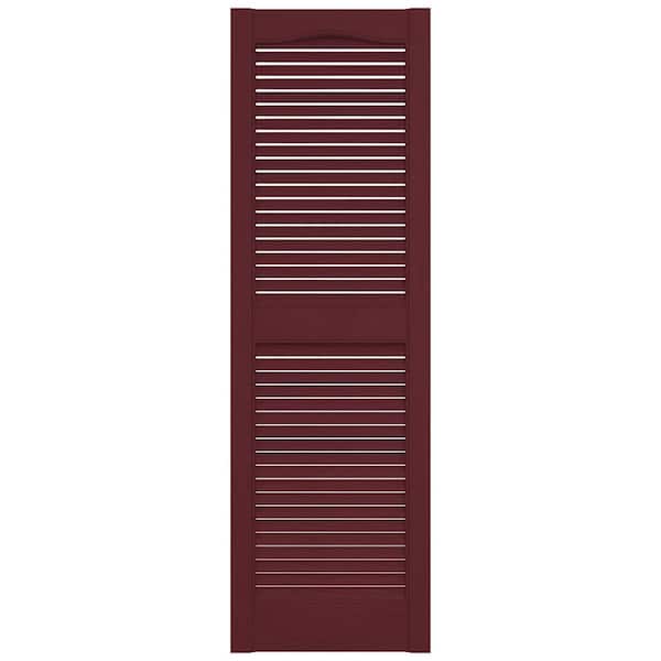 14.5 in. x 75 in. Louvered Vinyl Exterior Shutters Pair in Wineberry