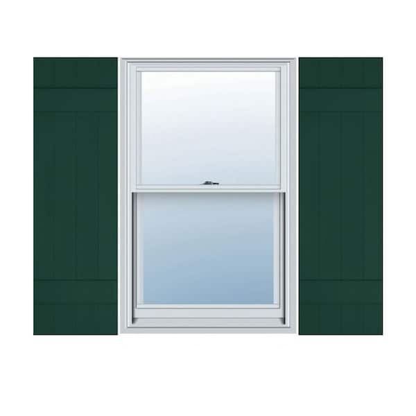 14 in. W x 39 in. H Vinyl Exterior Joined Board and Batten Shutters Pair in Midnight Green