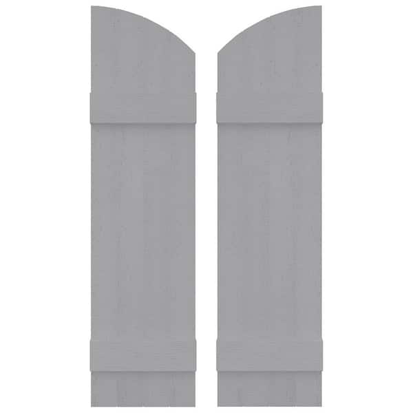14 in. W x 45 in. H Vinyl Exterior Arch Top Joined Board and Batten Shutters Pair in Paintable