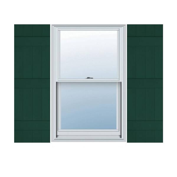 14 in. W x 80 in. H Vinyl Exterior Joined Board and Batten Shutters Pair in Midnight Green