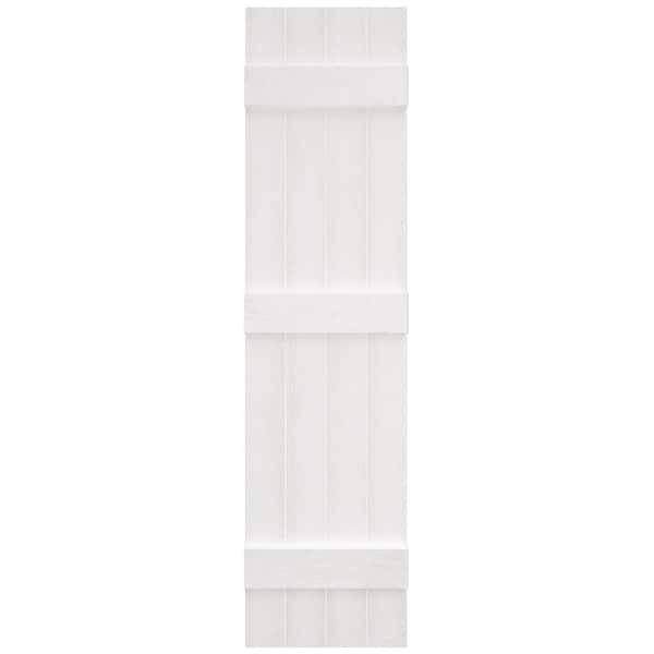 14 in. W x 80 in. H Vinyl Exterior Joined Board and Batten Shutters Pair in White