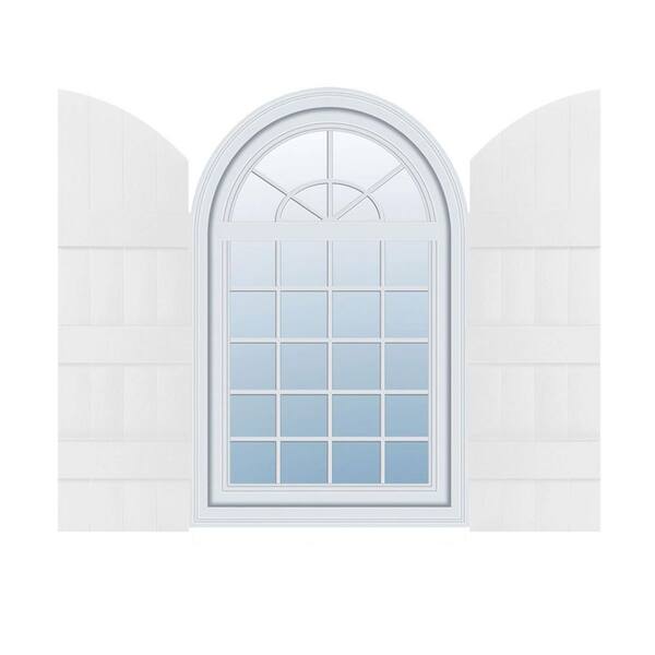 14 in. W x 94 in. H Vinyl Exterior Arch Top Joined Board and Batten Shutters Pair in Bright White