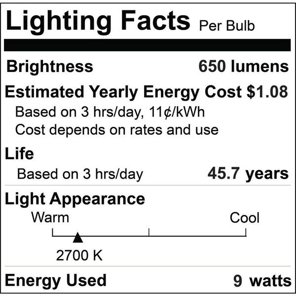 • Fixtures provide 650 lumens of warm 2700K white lighting