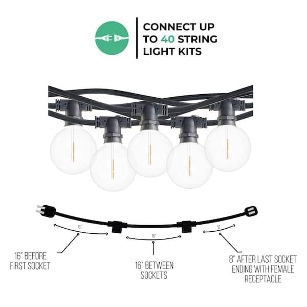 Outdoor/Indoor 14 ft. Plug-in G16 LED Black String Light with Clear Shatter Resistant Bulbs Included 10 Sockets (1-Pack)