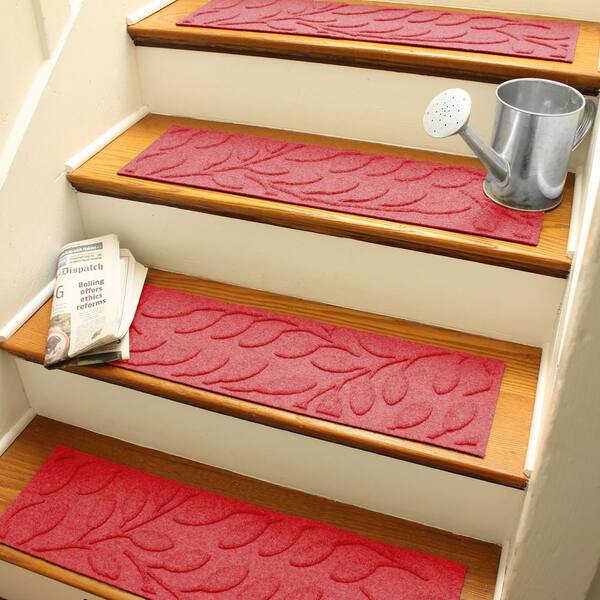 Aqua Shield Brittney Leaf Solid Red 8.5 in. X 30 in. PET Polyester Indoor Outdoor Stair Tread Covers (Set of 4)