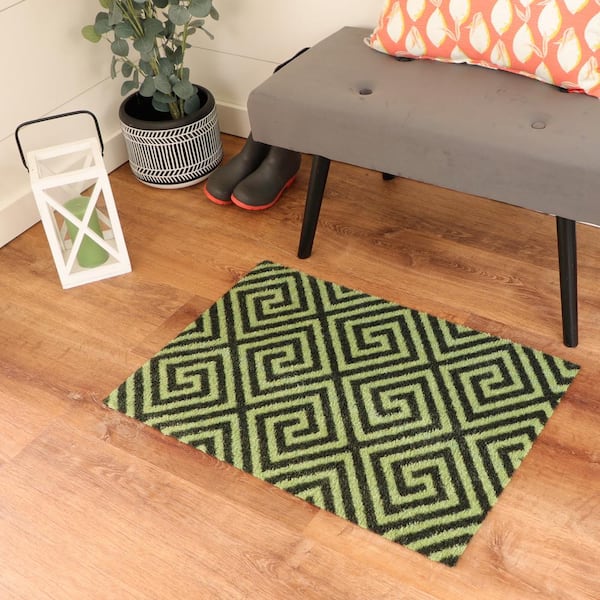 ColorStar Greek Grid Forest Green 22 in. x 34 in. Machine Washable Indoor Door Mat