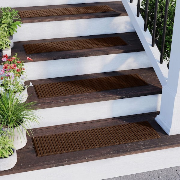 Waterhog Squares 8.5 in. x 30 in. PET Polyester Indoor Outdoor Stair Tread Cover (Set of 4) Dark Brown