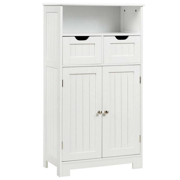 24 in. W x 12 in. D x 43 in. H White Double Door Bathroom Linen Cabinet Floor Storage Cabinet with 2-Drawers and 2-Doors