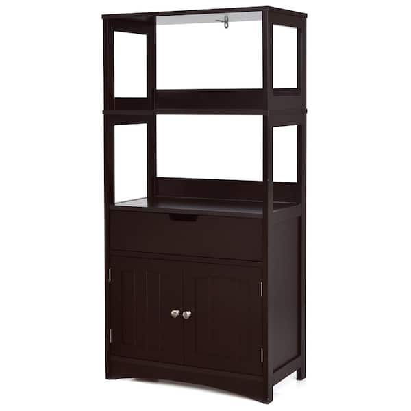 24 in. W x 13 in. D x 48 in. H Double Door Bathroom Linen Cabinet Floor Storage Cabinet in Brown
