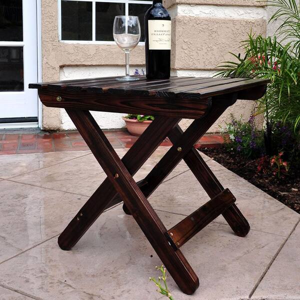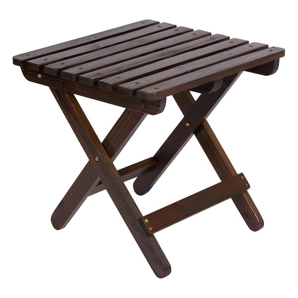 Burnt Brown Square Wood Folding Outdoor Side Table