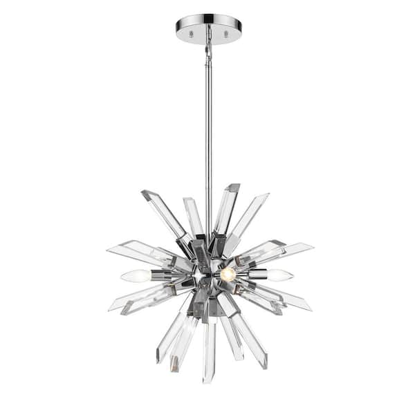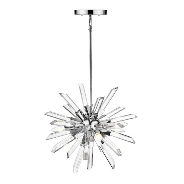 Burst 4-Light Chrome Indoor Starburst Chandelier with No Bulbs Included