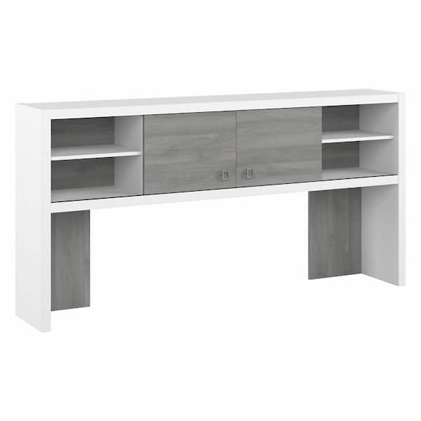 Echo 71.22 in. Pure White/Modern Gray Computer Desk Hutch with Shelves