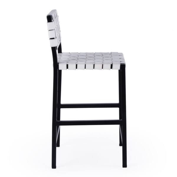 Bromley24.5 in. Seat Height White Leather and Iron Low Back Counter Stool