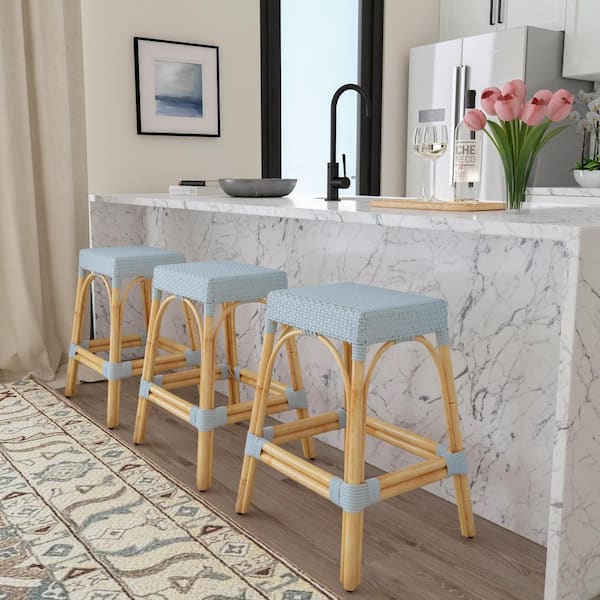 Robias 24.5 in. Light Blue Backless Rectangular Rattan Counter Stool (Qty 1)