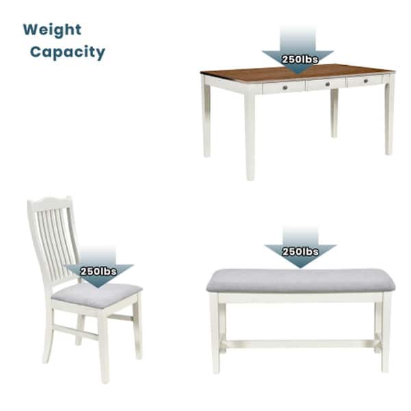 Butter Milk and Walnut 6-Piece Wood Table with Storage Drawer Chairs and Bench Outdoor Dining Set with Gray Cushion