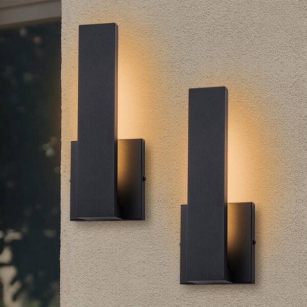 12 in. Black Dimmable LED Outdoor Hardwired Lantern Sconce with Frosted Glass Diffuser