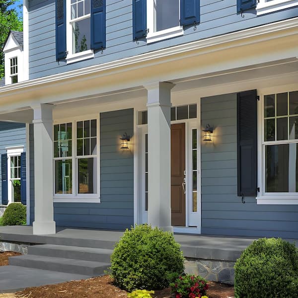 13. 25in. Matte Black Outdoor Hardwired Wall Lantern Sconce with Seeded Glass Shade, No Bulbs Included, 2-Pack