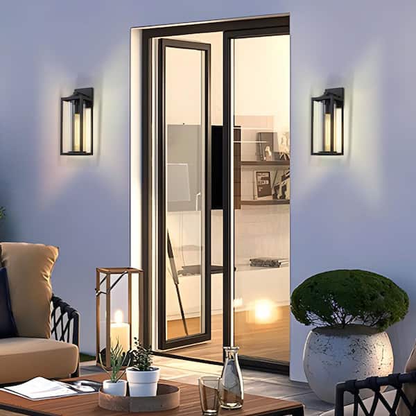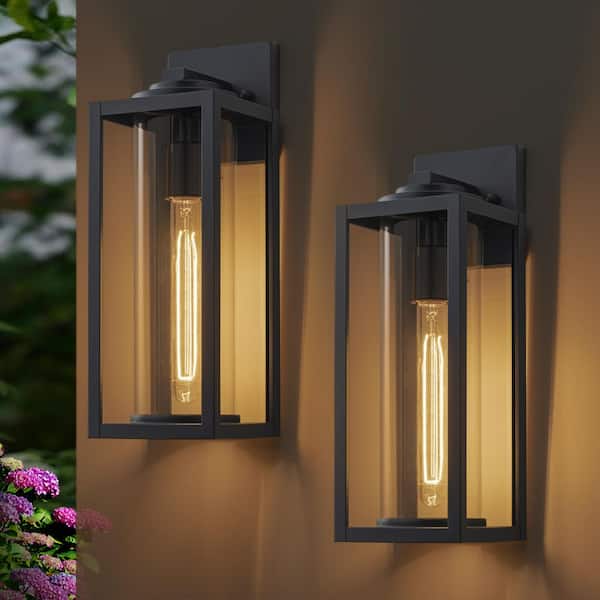 15.5 in. Matte Black Outdoor Hardwired Wall Lantern Sconce with No Bulbs Included