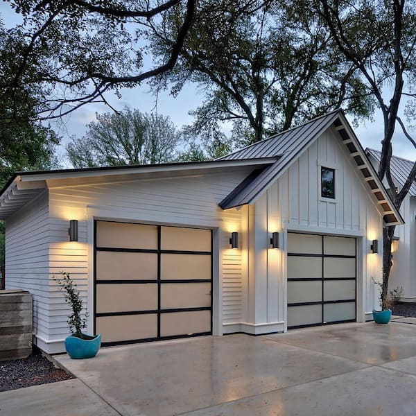 2-Light Matte Black Cylinder Outdoor Wall Lantern Sconce