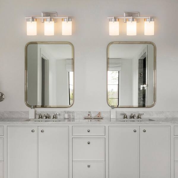 20 in. 3-Light Satin Nickel Dimmable LED Vanity Light with Frosted Glass Shade