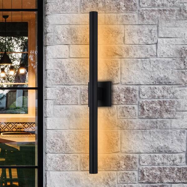 26 in. Black 2-Light 26-Watt Dimmable LED Outdoor Hardwired Wall Lantern Sconce with Frosted Glass Diffuser
