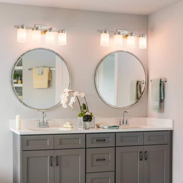 27 in. 4-Light Satin Nickel Vanity Light Light Fixture with Frosted Glass Shade