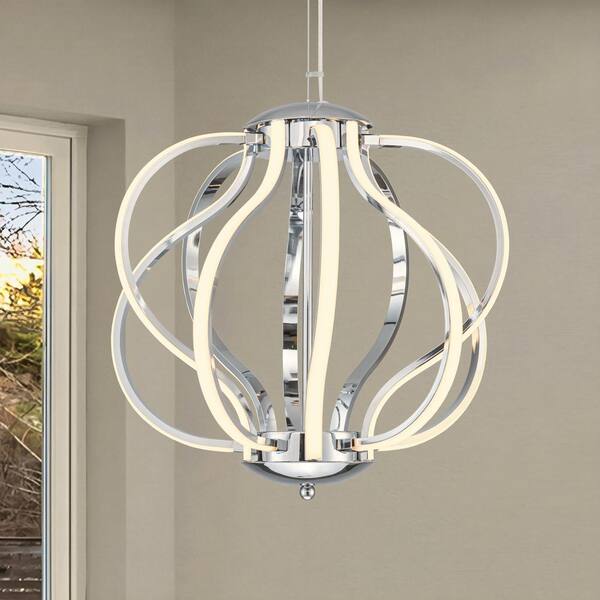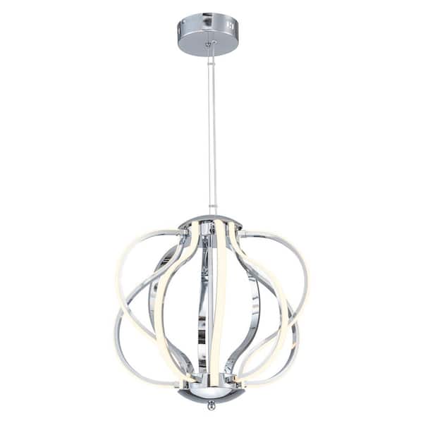 66-Watt 10-Light 18. 5in. Chrome Globe Integrated LED Chandelier Pendant Light