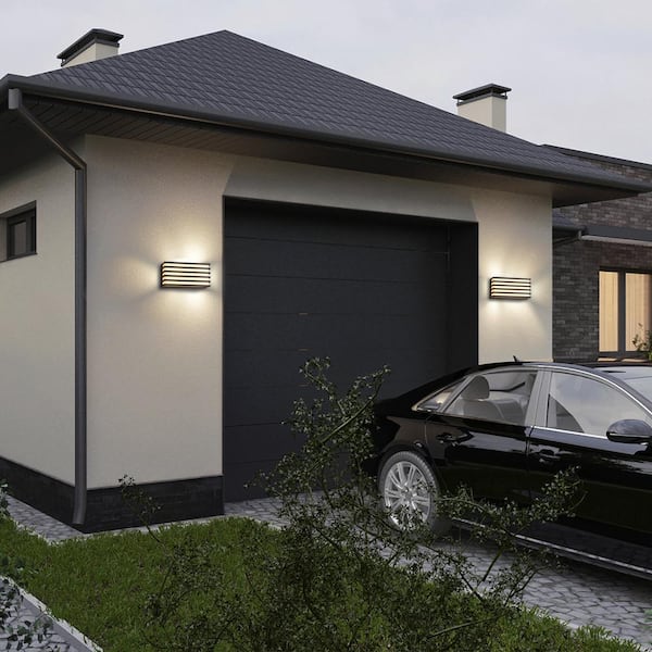 8.75in. Modern Black Aluminum LED Outdoor Hardwired Wall Lantern Sconce Lights (2-Pack)