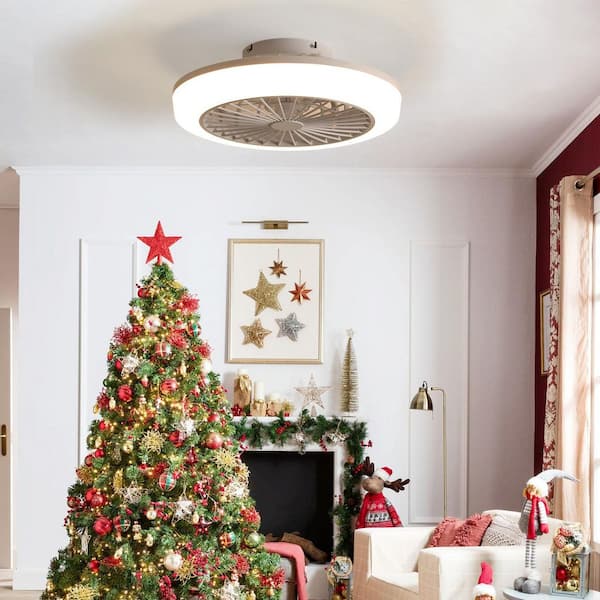 18 in. Low Profile Indoor White Caged Ceiling Fan with Light and Remote Control, Integrated LED Included